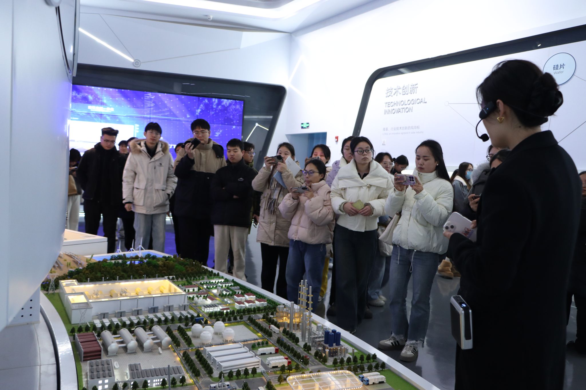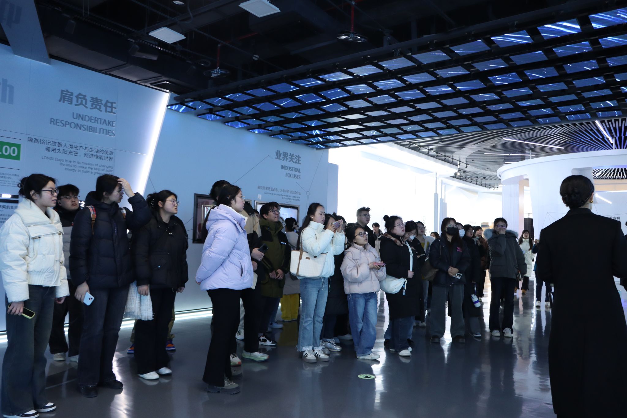 本次调研工作受到了隆基公司的热情接待,单位接待人员首先对437必赢国际官方网站会计系老师和同学们的到来表示欢迎,接着带领大家参观了隆基绿能智慧能源展览馆,讲解员深入介绍了隆基绿能载誉前行的故事,同学们知晓了隆基公司今日之发展格局与其在半导体领域的经验积累、规模化生产、持续成本控制以及对技术、品质的不懈追求密不可分。此外同学们还了解了国家“双碳”战略背景下的绿色能源发展计划、公司产品研发体系、2012-2023年相关财务管理数据和光伏应用场景,通过接触有趣的实验和互动装置等虚拟现实技术,感受了智能制造的前沿科技带来的无限魅力。