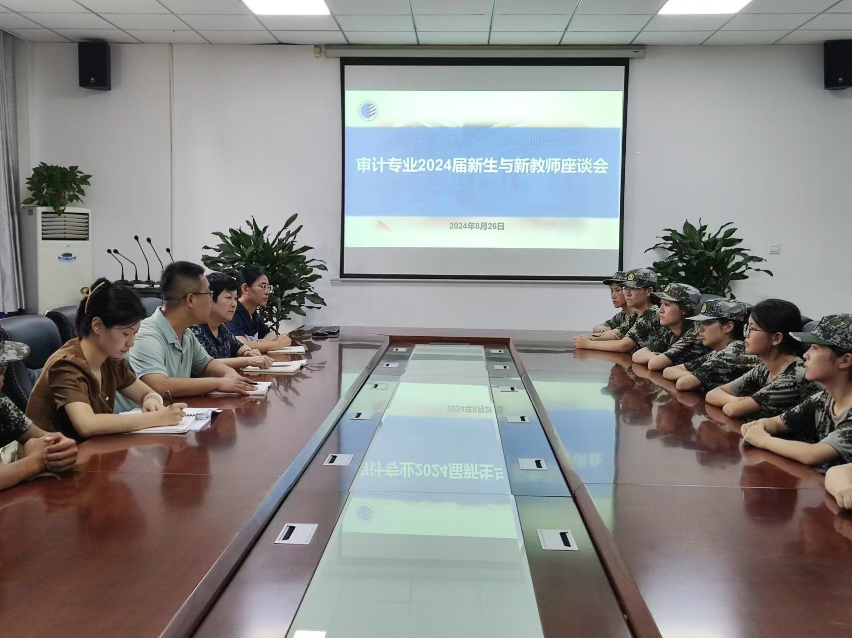 青春洋溢,梦想起航。2024年8月26日,为进一步了解新生入学以来的生活适应状况,437ccm·必赢国际审计教研室召开新生代表关怀见面会。会议由杜玉瑞老师主持,杨少杰副院长,审计专业带头人马焱教授,审计教研室教师出席,2024级审计专业15名新生代表及审计社团代表参会。