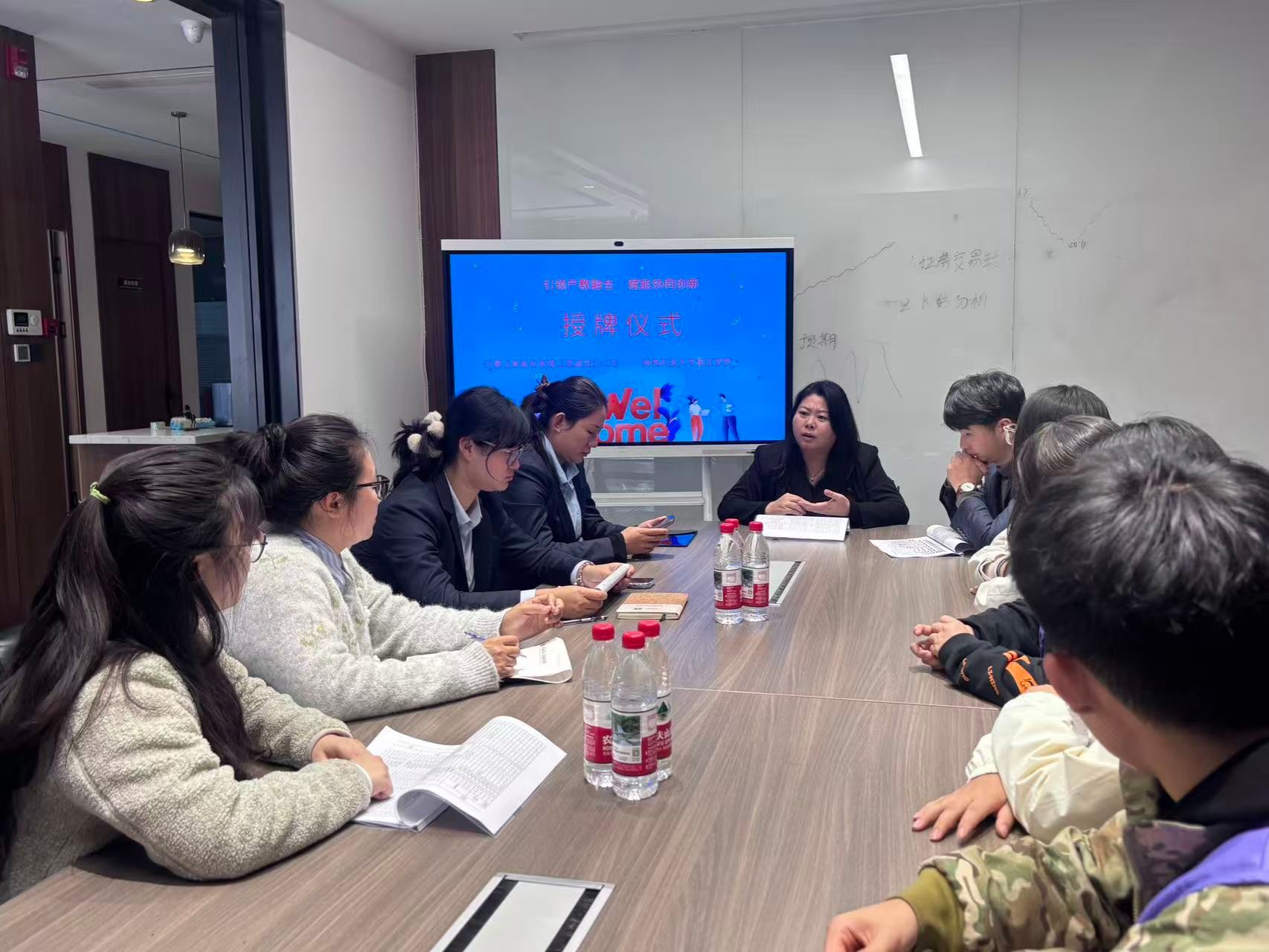 参观结束后,校企双方召开专业建设研讨会,重点围绕金融工程专业“十五五”规划的制定展开交流。会议由合规风控部总经理王荣主持,财经审计系系主任及茹、金融工程专业教研室主任侯茜云及贠凯鸽、陈庆哲两位教师,与开源证券投资业务部、合规风控部、财富管理部的业务骨干共同参会。