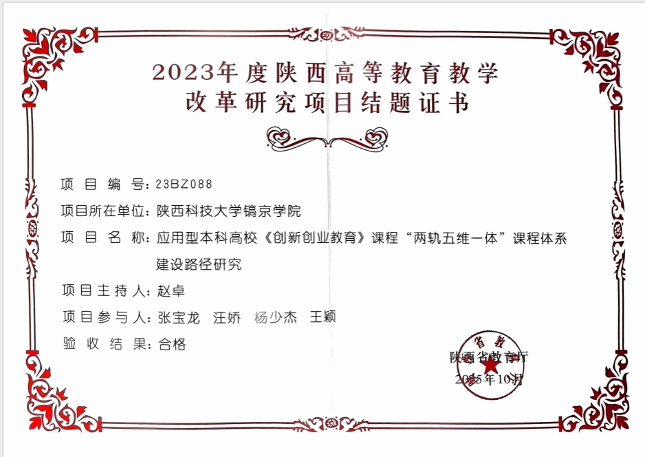 教改与赛事齐发力,成果显著。获批省级教改项目1项、校级2项。教学成果方面,1项成果获校级二等奖;教师竞赛中,1人获校级教学创新大赛二等奖;1人获校级青年教师讲课比赛一等奖;校级微课大赛中1人获三等奖、2人获三等奖;校级最美教案评选中1人获一等奖、3人获二等奖、3人获三等奖;学生竞赛中,2项大学生创新创业训练计划获国家级立项;同时在A类竞赛中斩获省级奖项10项,其他比赛若干项,尽显师生过硬实力。
