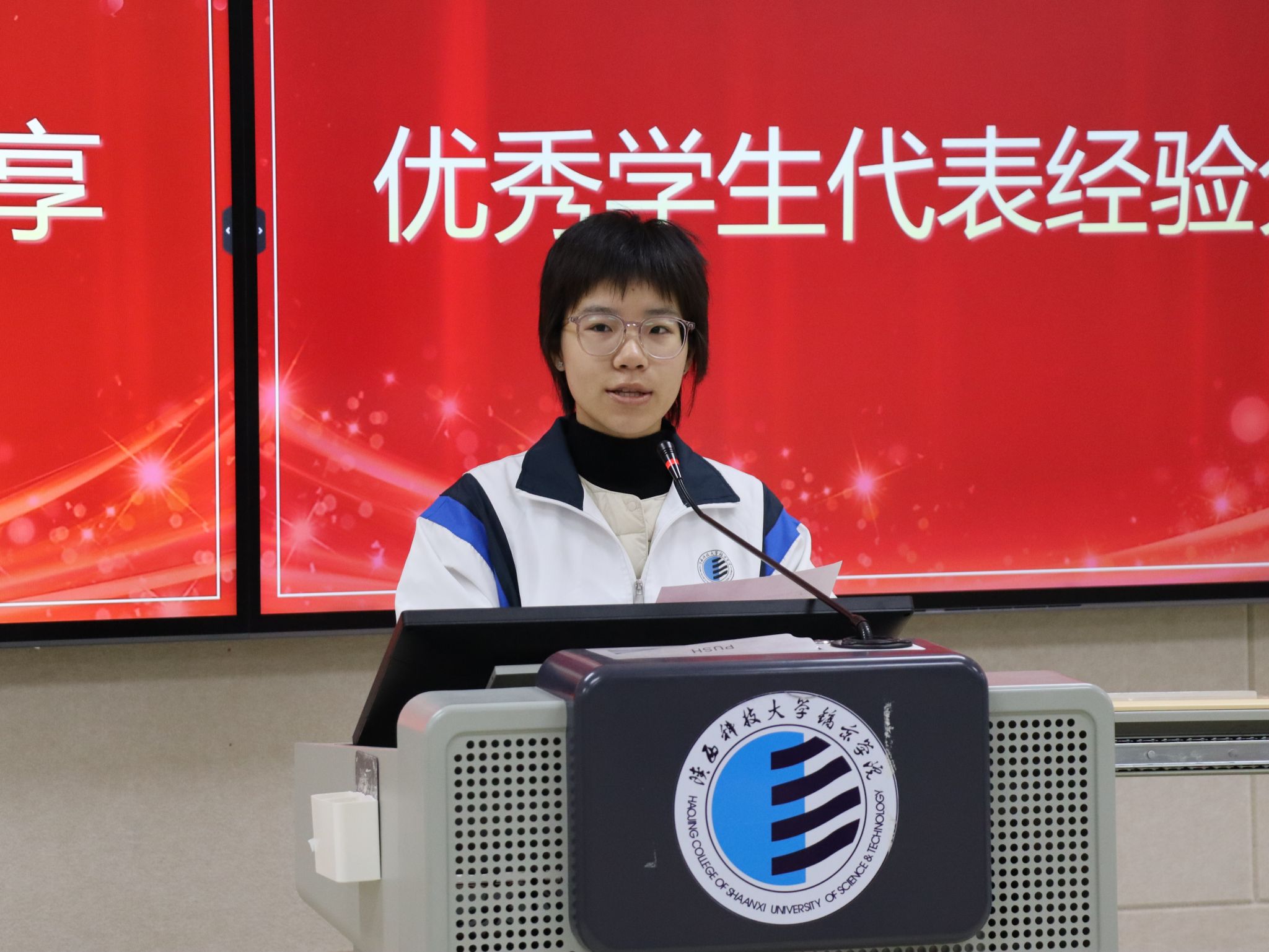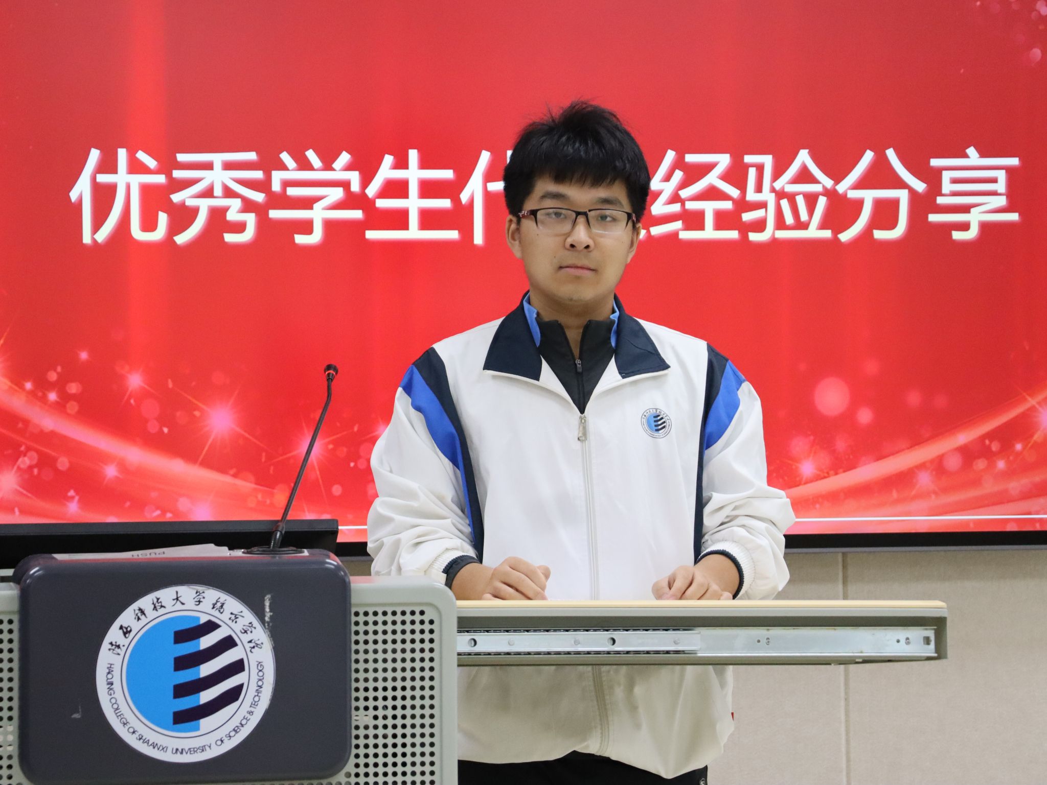 大会在庄严的氛围中拉开帷幕。首先,来自23级的四级优秀学生代表税收2301李子娇、审计2301刘盛东同学依次登台分享经验。他们结合自身备考经历,从核心词汇积累、真题高效利用、听力精听泛听结合、写作翻译模板适配等实用角度,毫无保留地传授了备考秘籍,还分享了应对考前焦虑的心态调节方法,接地气的分享赢得全场阵阵掌声,让学弟学妹们深受启发。