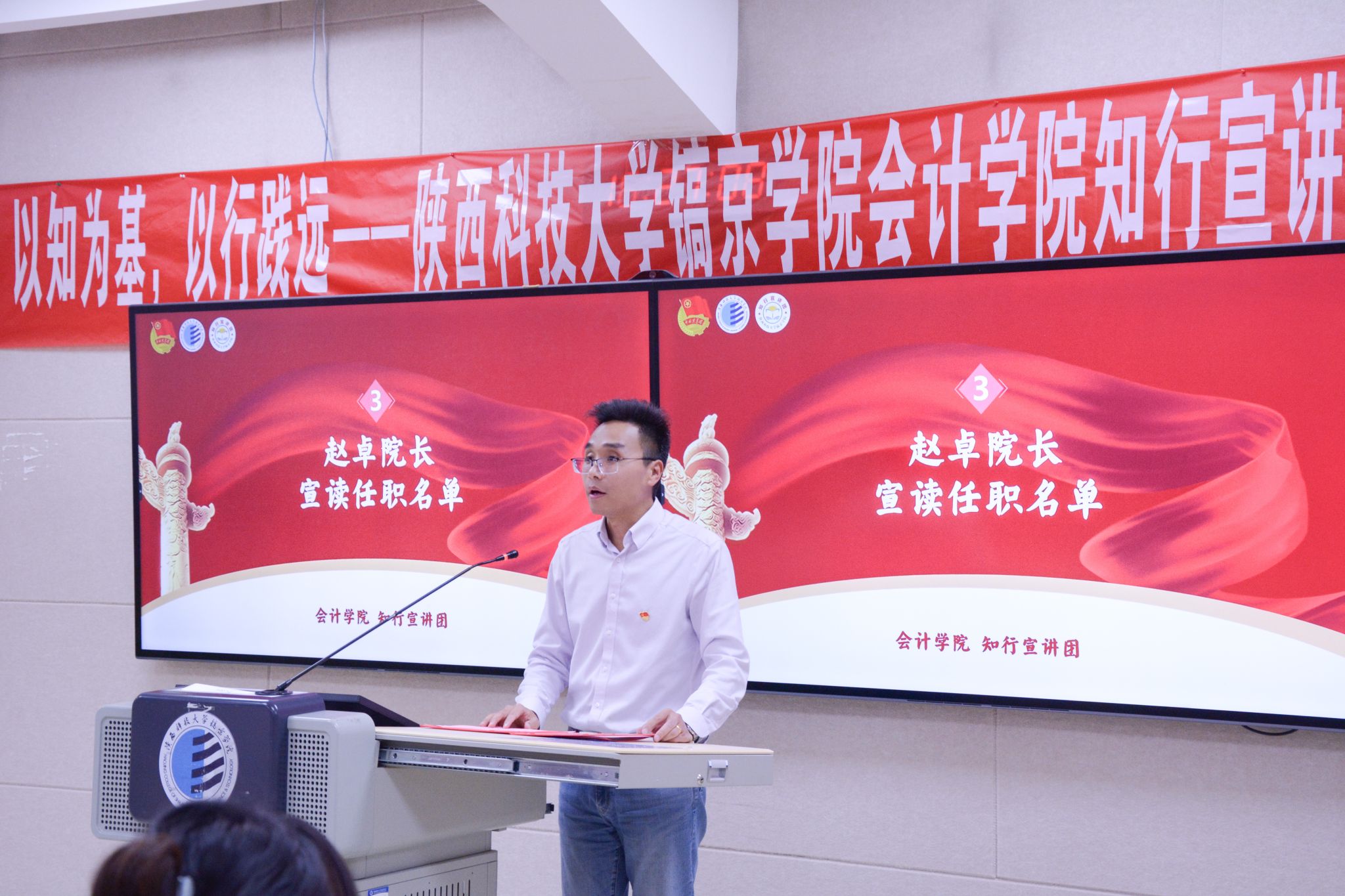 为深入学习贯彻党的创新理论,发挥青年榜样的示范引领作用,凝聚青年力量,传递时代声音,11月24日,437必赢国际官方网站437ccm·必赢国际“知行宣讲团”成立仪式在教学楼201顺利举行。437ccm·必赢国际院长赵卓、副院长韩雅轩、学工秘书薛晓轩、校团委书记韩家鸿、校团委崔研硕,437ccm·必赢国际全体辅导员及各级学生组织代表、宣讲团全体成员出席仪式。仪式由437ccm·必赢国际孟庆涵老师主持。