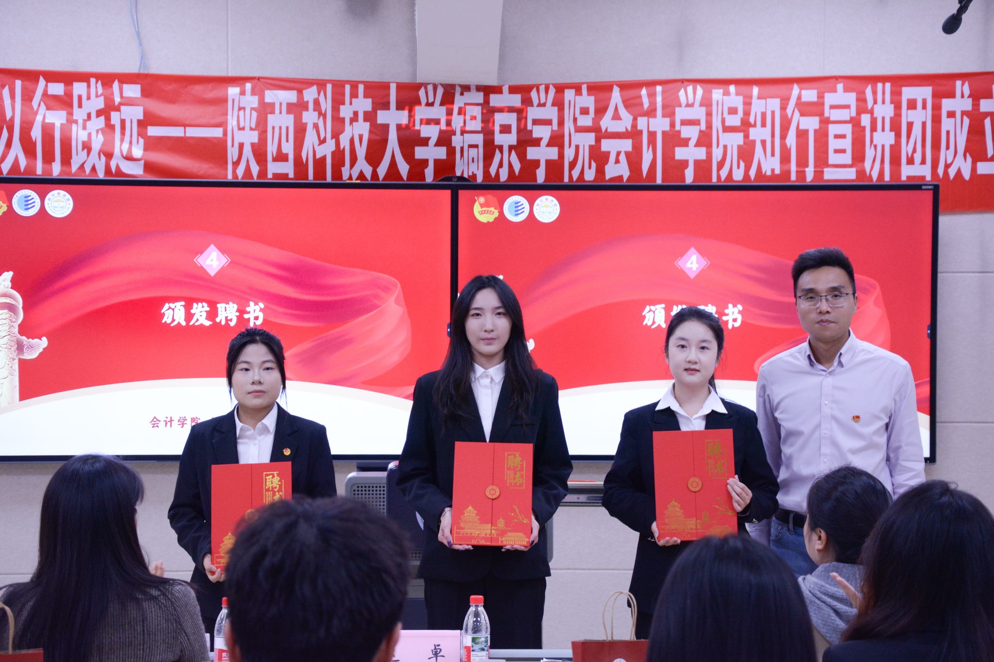 校团委书记韩家鸿为宣讲团成员代表授予团徽,希望全体成员以此次成团为契机,不断提升自身素质,以脚步丈量初心,以声音传递力量,为学校发展贡献青春力量。