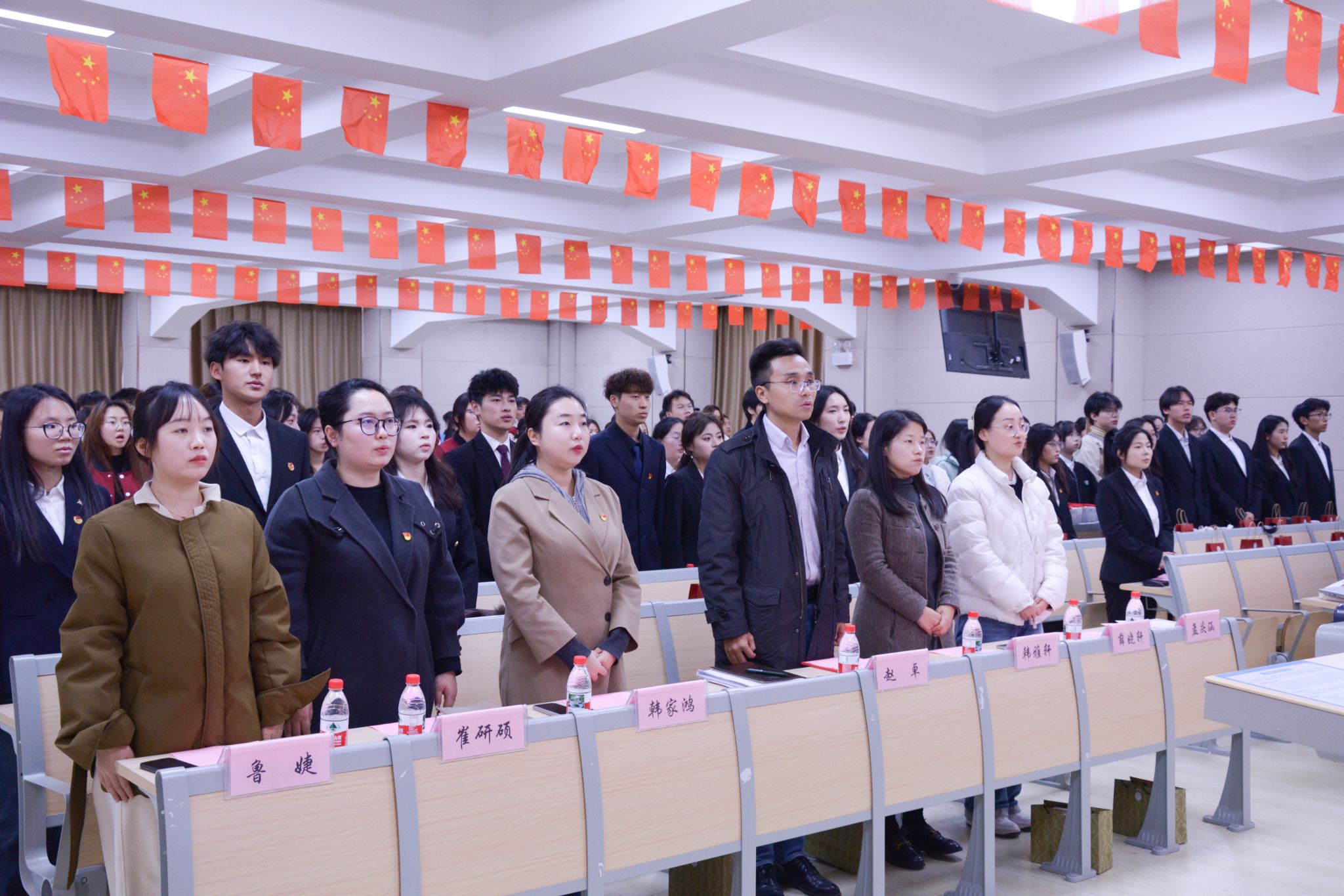 仪式在庄严雄壮的《国歌》声中正式拉开帷幕,现场全体人员肃立致敬,目光坚定。