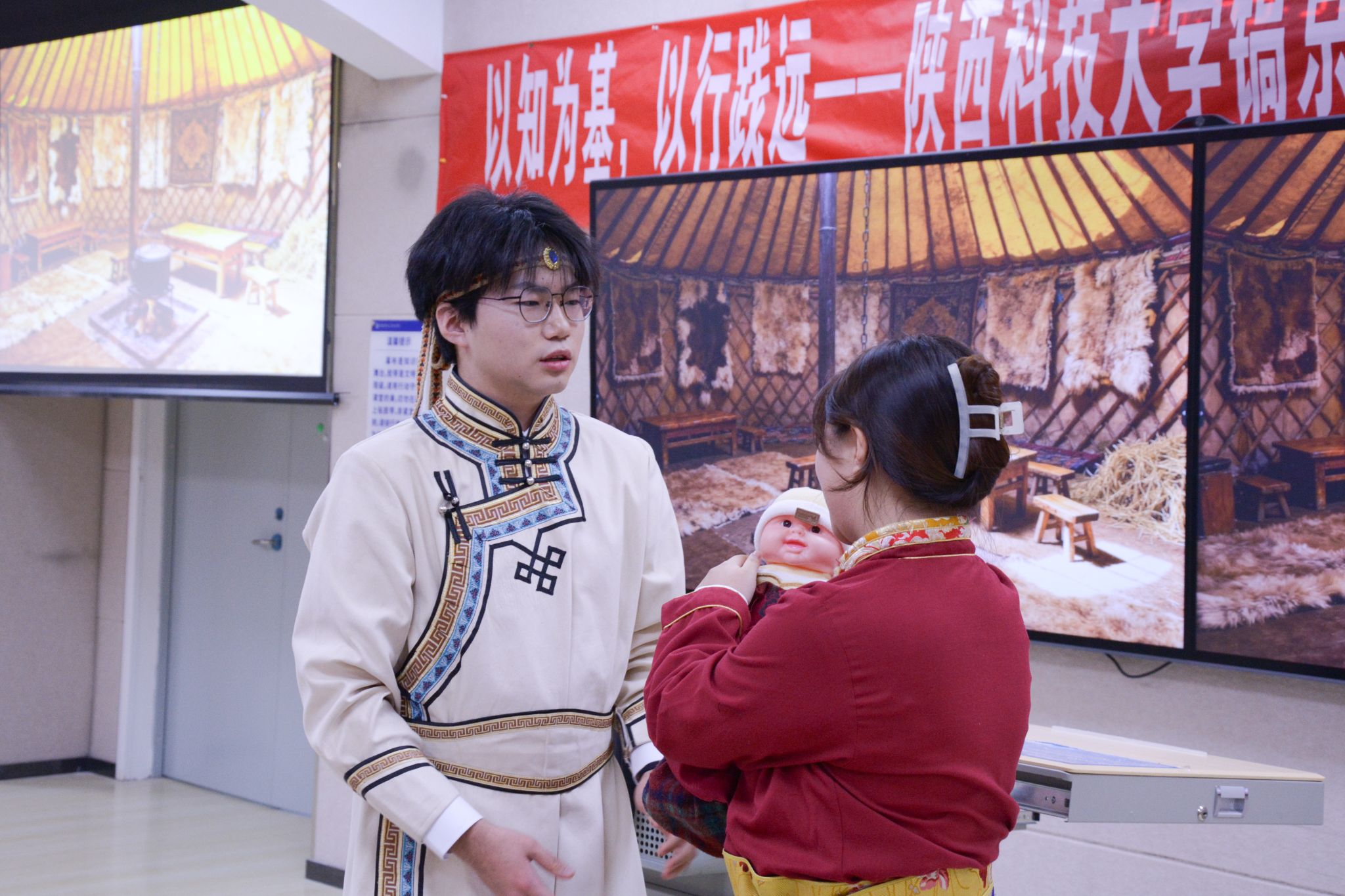 仪式现场,宣讲团成员带来了风采展示:成员们用话剧《满江红》重现热血故事,让历史中的家国情怀在现场流淌;情景剧《三千孤儿入内蒙》以细腻的表演传递大爱温情,将真挚的情感传递给每一位观众,引发强烈共鸣;合唱《闪耀》用青春的歌声唱出青年的担当,将现场氛围推向高潮。