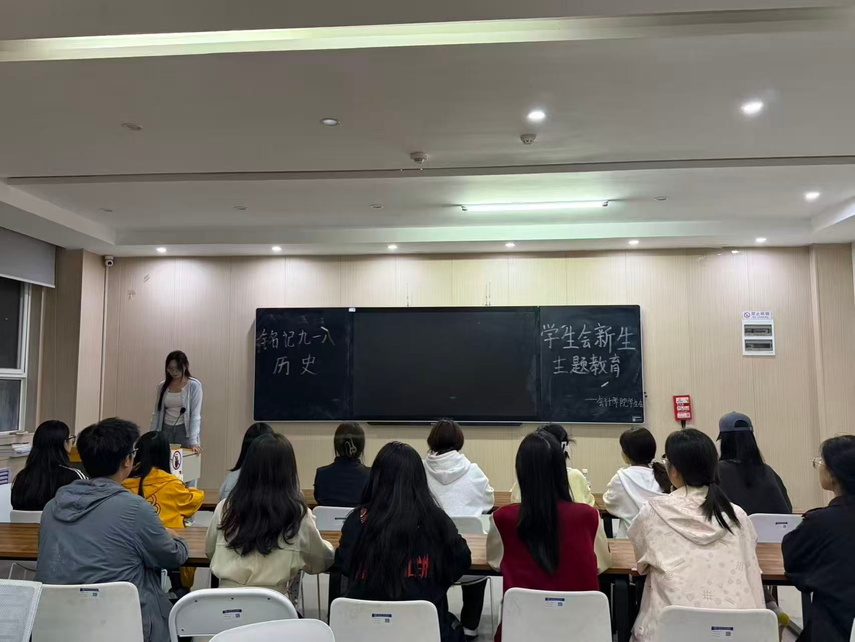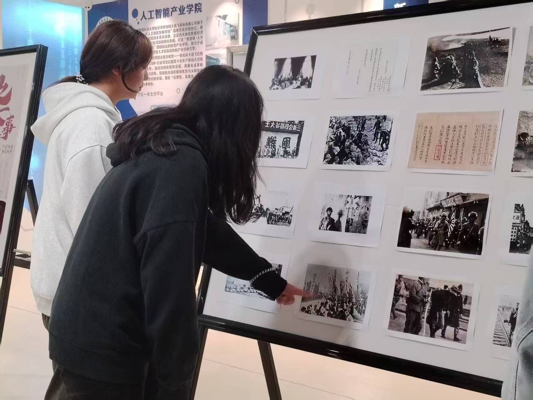 一至七号学生公寓同步张贴“铭记九一八”主题海报,以图文并茂的形式生动讲述历史故事,将“勿忘国耻”的信念深植于校园生活日常;实验楼大厅举办“铭记历史”主题图片展,通过真实影像再现事变历程与民族抗争史,吸引师生驻足观览、静心体悟。实验楼312教室开展专题讲座,学生会成员围绕“事变意义与青年使命”进行深度解读,互动环节中,同学们就“新时代青年传承爱国精神的实践路径”等议题展开热烈讨论,进一步凝聚“强国有我”的思想共识。