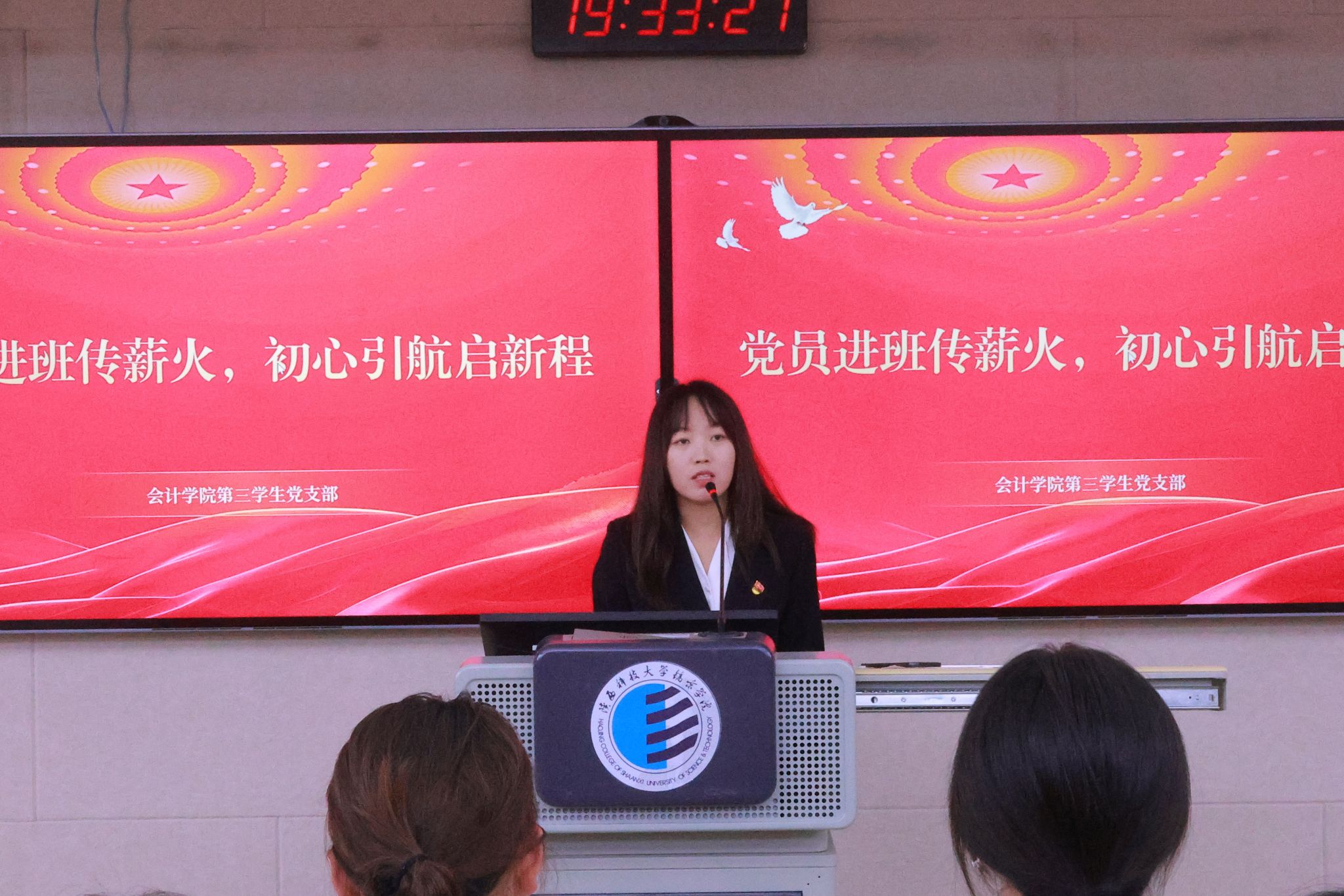 为深入学习贯彻习近平新时代中国特色社会主义思想和党的二十届三中全会精神,凝聚党员先锋力量,帮助2025级新生快速了解党组织与团组织建设情况,明确入团、入党的发展路径,同时搭建党员与新生的常态化沟通桥梁,9月23、24日,会计学院学生党支部深入2025级新生班级,开展党员包班网格化管理工作。