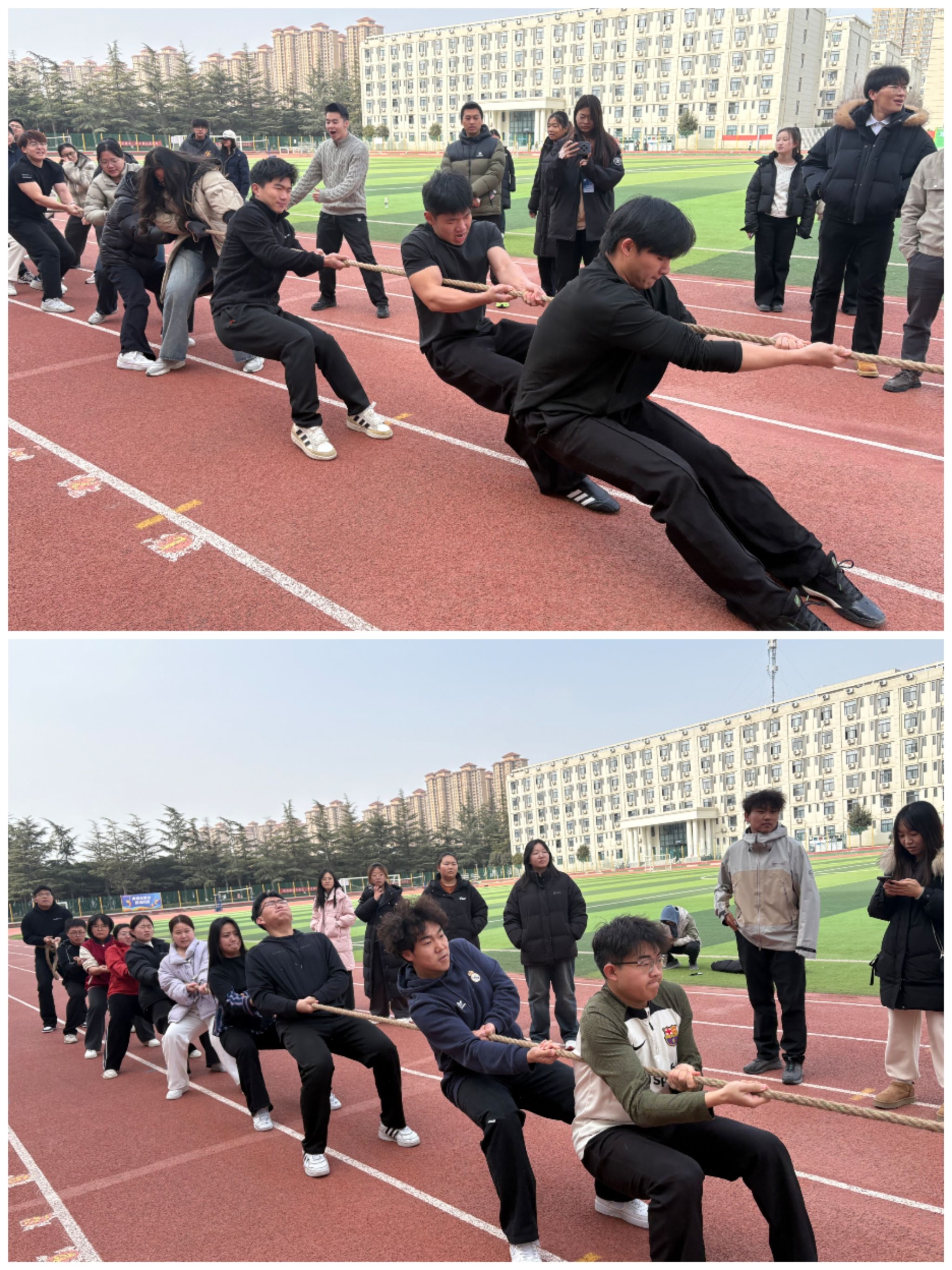 在竞技场上,各学院健儿以绳索为纽带,勠力同心、步调一致,每一次角力都彰显着勠力同心的意志品质;场边观战者群情激昂,助威声浪震彻云霄,每一声喝彩都化作选手奋勇争先的不竭动力,共同谱写出青春激扬、众志成城的壮美华章。这根承载使命的长绳,既是团结协作精神的物质具象,更是集体主义信念的生动载体;这场融合竞技与友谊的盛会,既演绎了同台切磋、互促共进的体育真谛,又让参与者在挥洒汗水中感悟团队力量,深刻践行“凝心聚力、协同发展”的价值追求,为深化跨院系协同育人机制搭建了实践平台,更为培育新时代青年家国情怀注入强劲动能。