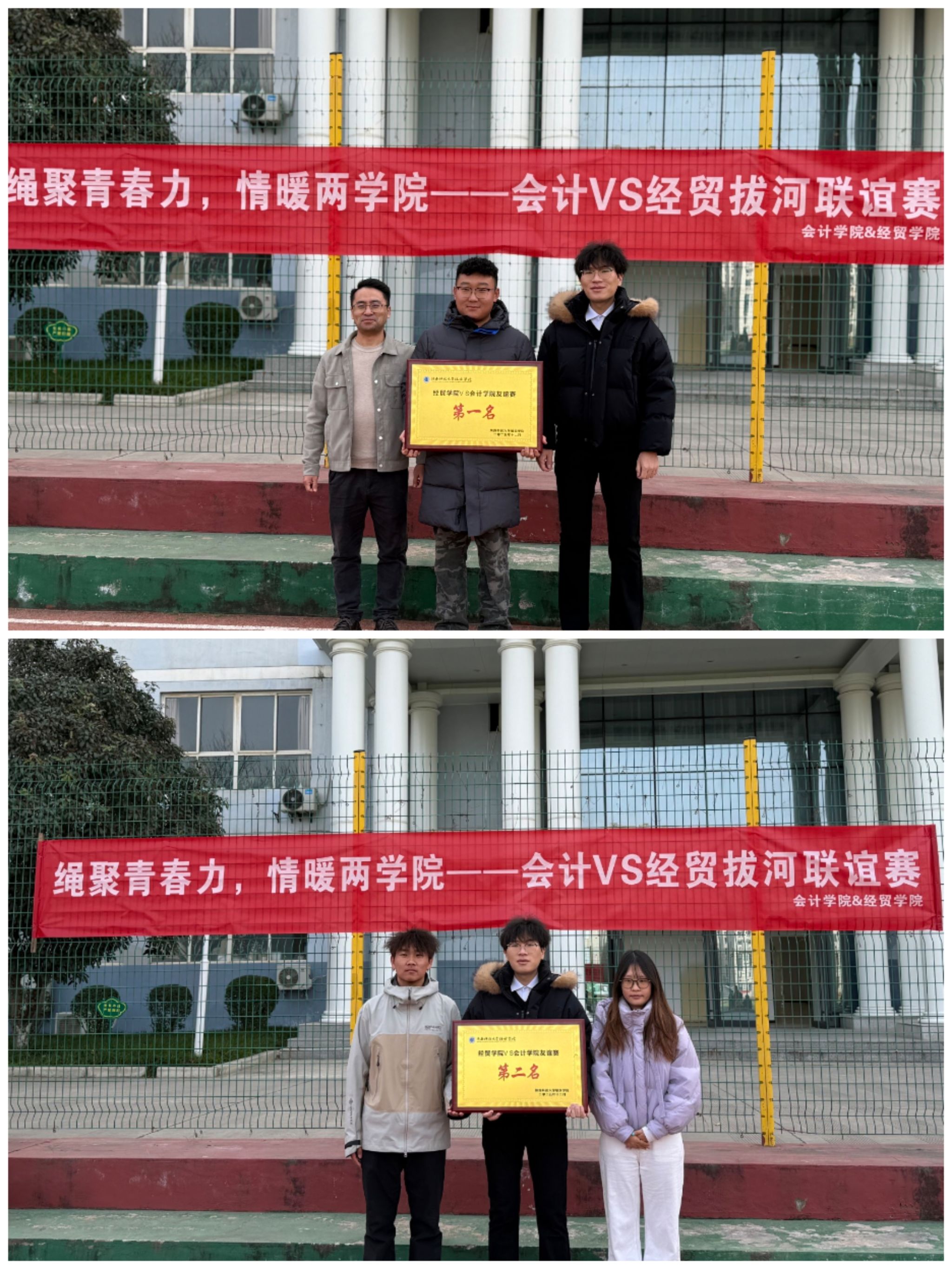 这场“经会联动·同绳共进”拔河赛,以绳索为轴,卷动两院学子澎湃的青春力量,深刻印证了“勠力同心者胜,风雨同舟者兴”的永恒真理。此役不仅铸就了“经脉相连,气血交融”的协作典范,更昭示:真正的胜利,在于将“心往一处想、劲往一处使”的团结基因,熔铸为镐京人砥砺前行的精神血脉。愿这份在竞技中淬炼出的时代合力,化作青年学子劈波斩浪的智慧罗盘,于复兴征程中书写“知行合一,德才兼备”的育人华章。
