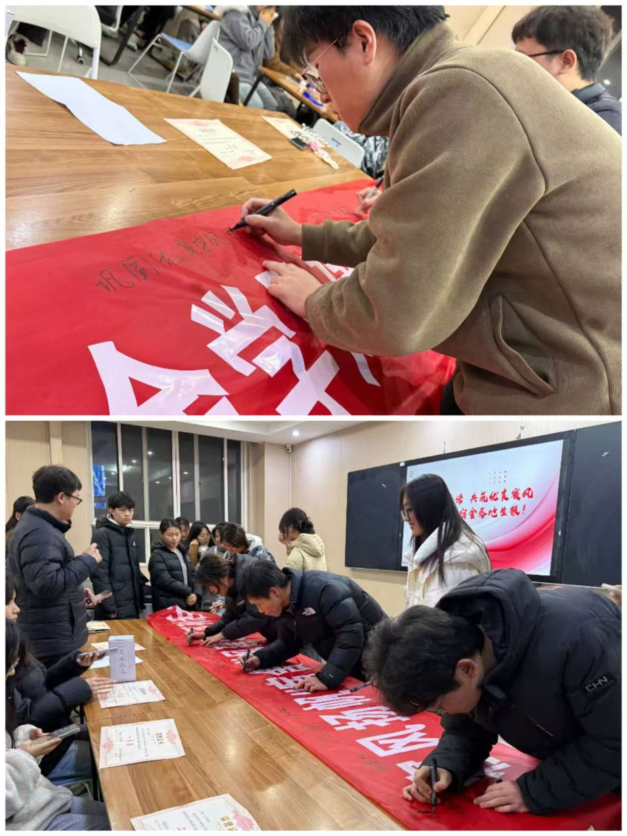 活动最后,全体人员签名留念,标志着学风建设活动圆满落幕。此系列活动显著增强了宿舍学习氛围,为学院、学校学风注入新动力。宿舍作为关键学习生活空间,其优良学风将带动班级、学院乃至全校学习风气的提升,助力学校学风建设的深化与巩固。