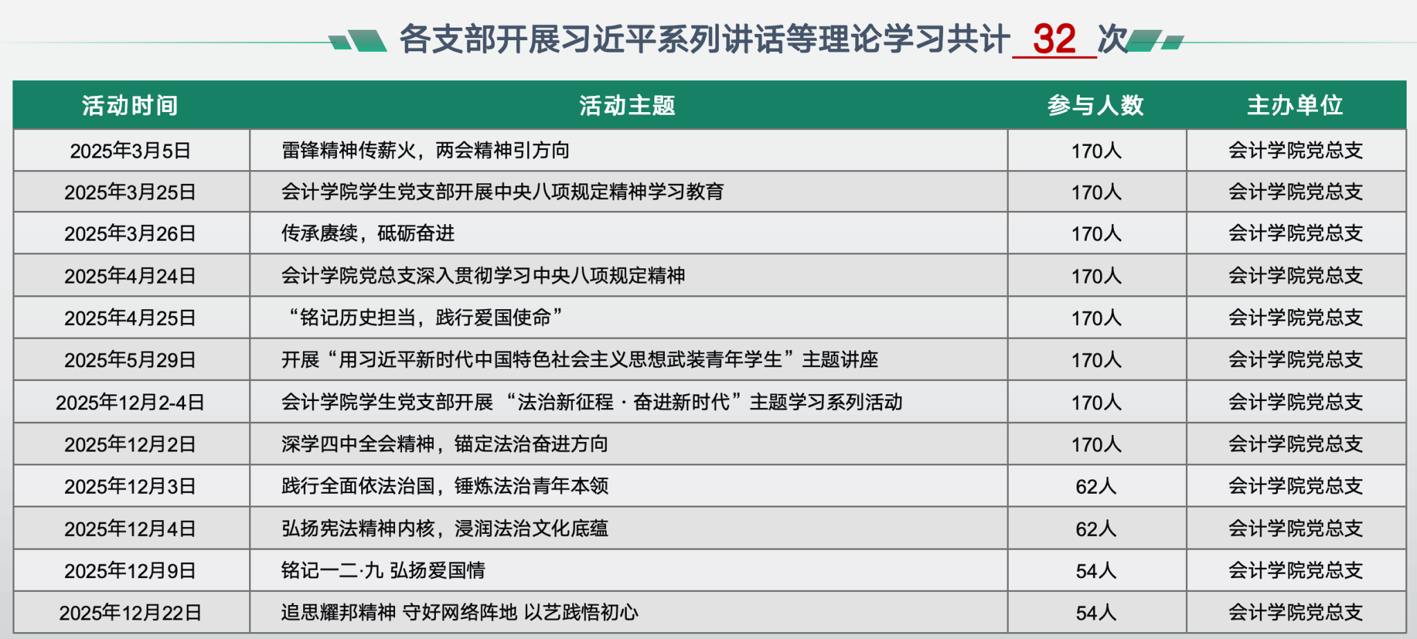 展望 2026,学院将始终保持踔厉奋发的奋进姿态,持续深化党建引领的核心引擎作用,以辅导员队伍专业化建设为关键抓手,推动党建工作与育人中心工作深度融合、同频共振。充分发挥辅导员一线育人、全程育人、全方位育人的核心优势与先锋作用,倾心护航青年学子在青春赛道上勇毅奔跑、逐梦前行,为培育更多德才兼备、知行合一的高素质会计专业人才,为助力中国式现代化建设,持续贡献会计人的青春力量!