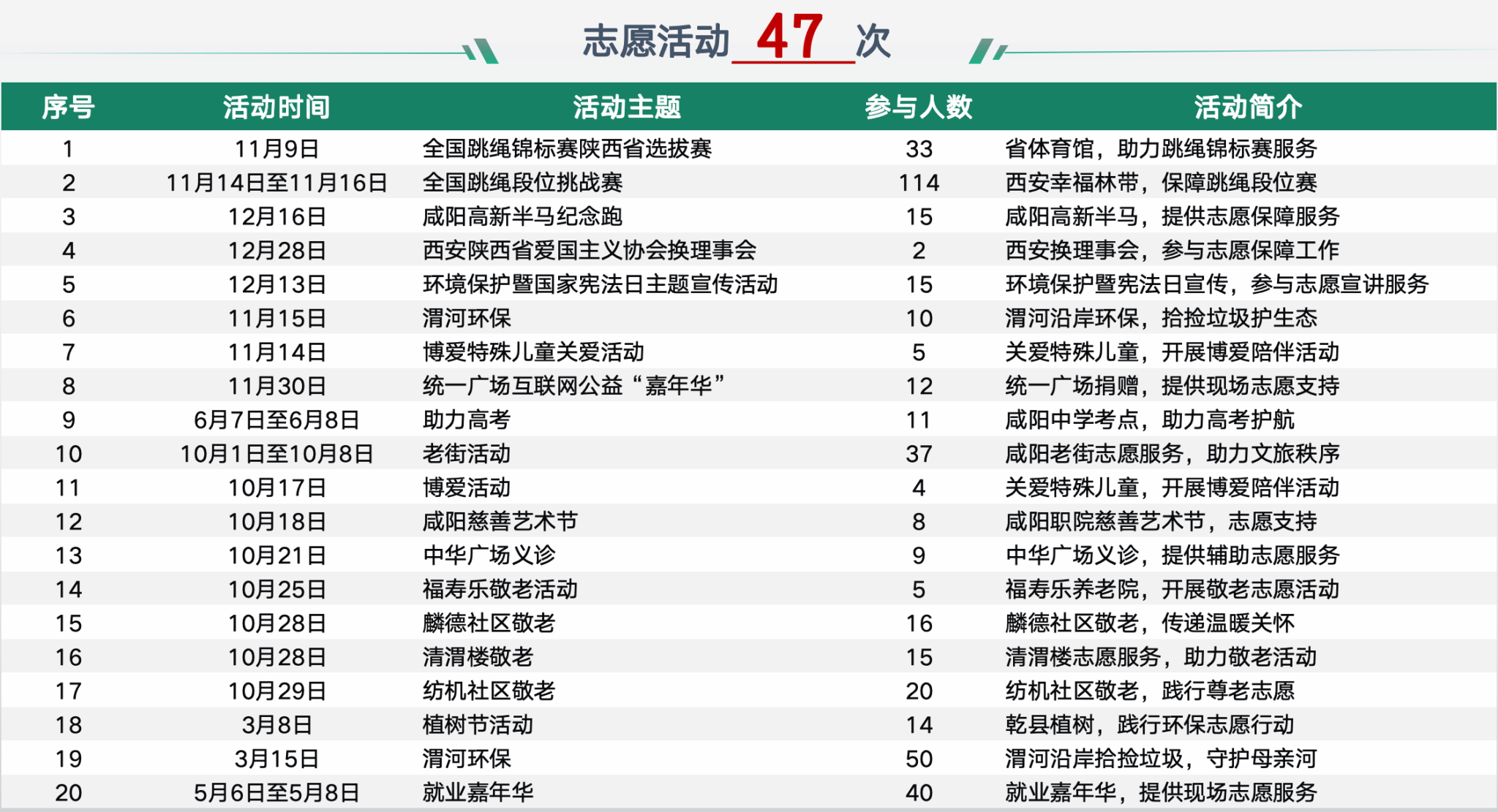 将党建工作与志愿服务深度融合,与咸阳慈善协会、咸阳市渭城区志愿服务联合会共建志愿服务基地,组建“青鸽志愿队”。全年积极参与全国跳绳锦标赛陕西省选拔赛、咸阳市助力高考、渭河环保、敬老爱老、博爱特殊儿童关爱等47场大型志愿服务活动,累计服务时长7229小时,服务人数超3000人。青年学子在志愿服务中传承优良传统、锤炼吃苦品质,用实际行动践行社会责任,展现会计学子的青春担当。