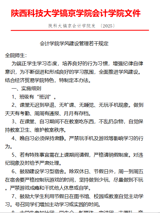 以党建引领校风、学风、师德师风建设,通过亮明党员身份、树立先进典型,营造“比、学、赶、超”的良性氛围。制定出台学风建设专项文件;组织优秀党员进班分享学习经验、开展学业帮扶,建立党员包班考核机制,压实学风管理责任;依托学科竞赛、创新创业大赛等平台,鼓励学生以赛促学、以学促研。学院在校级“学风建设月”活动中获评“优秀组织单位”,在第七届体育文化节获团体总积分第一名,2025年获评“征兵工作先进学院”,在“讲中华之美·筑民族同心·承镐京初心”宣讲大赛获评“优秀组织单位”,在第三届“青辩杯”大学生课外辩论赛获“最佳组织奖”,在“文明宿舍”评选中荣获“优秀组织单位”,优良风气蔚然成风。