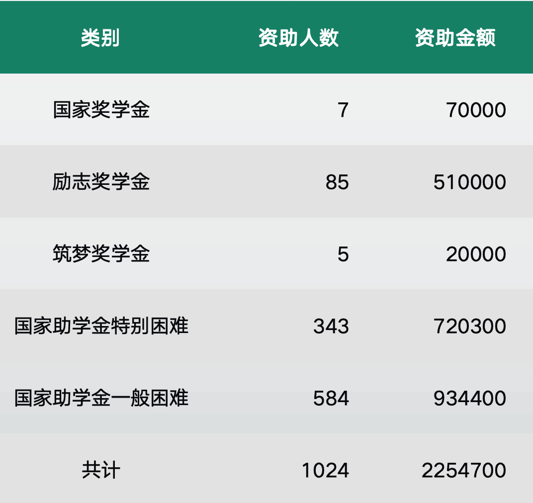 坚持“党建+资助”模式,突显资助育人功效。严格落实国家奖助学金政策,全年累计资助学生1024人,资助金额达225.47万元。其中,国家奖学金7人(7万元)、励志奖学金85人(51万元)、筑梦奖学金5人(2万元)、国家助学金特别困难343人(72.03万元)、国家助学金一般困难584人(93.44万元)。在资助过程中注重价值引领,培养学生感恩意识与责任担当,实现“资助育人、育心育德”的双重目标。