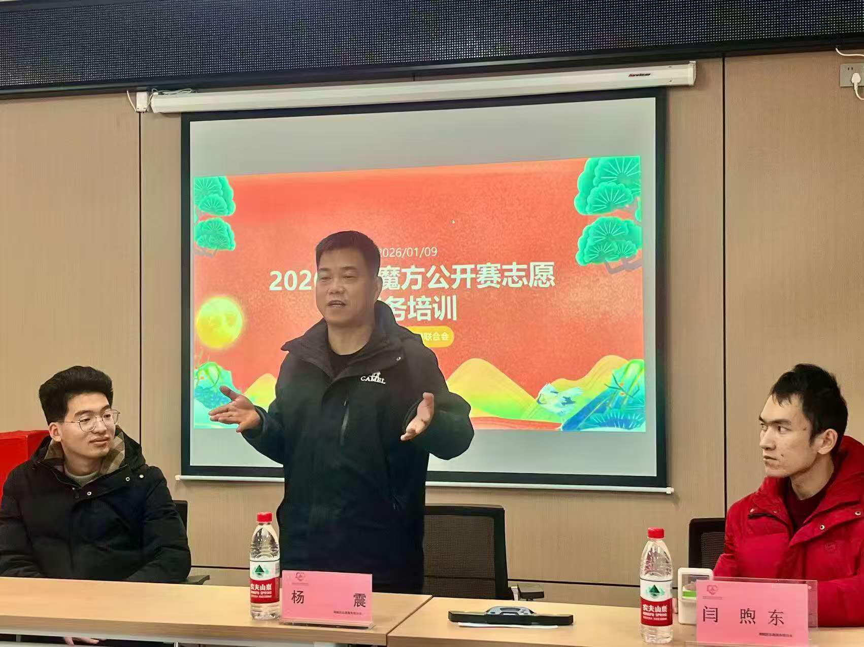 为确保志愿服务工作精准高效推进,活动当天上午,全体志愿者参加了赛前专项培训。专业老师围绕魔方比赛的执裁规则展开详细讲解,重点聚焦公正计时方法、违规情形判定标准、选手成绩准确记录流程等核心内容,结合往届赛事案例拆解实操要点,为志愿者们夯实服务基础。
